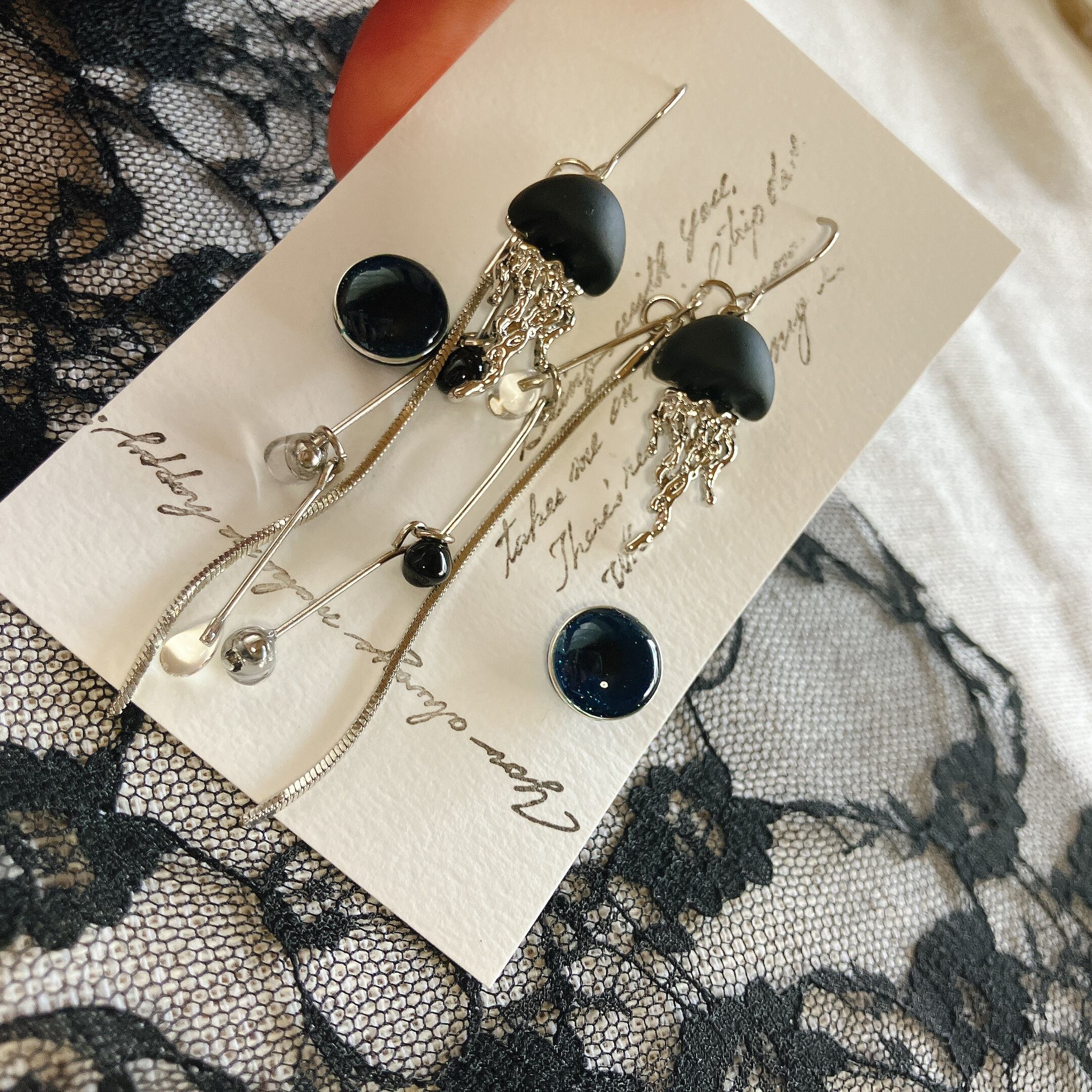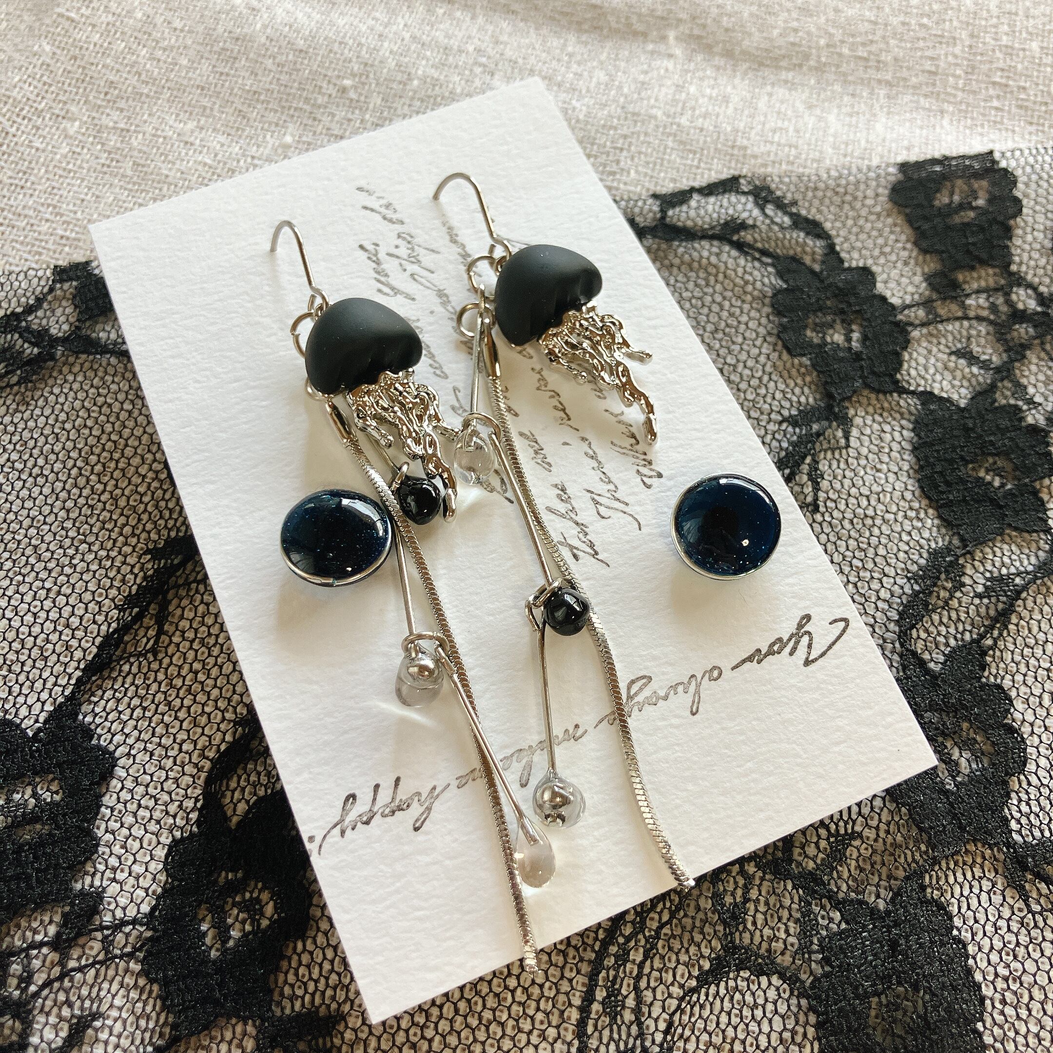 - デザイン: フックタイプピアスとポストピアスの2セット組の海月、海モチーフピアス